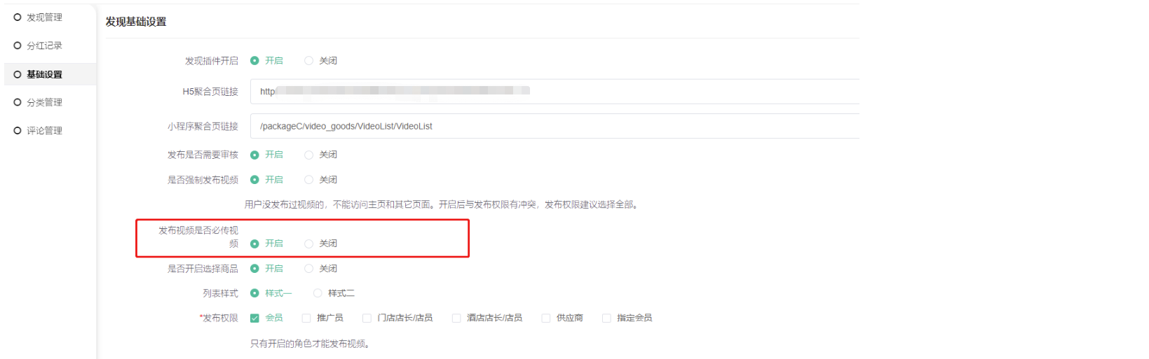 1)发布是否需要审核,选择开启则是用户前端发布视频后需要在发现管理进行审核通过,选择关闭则不用~