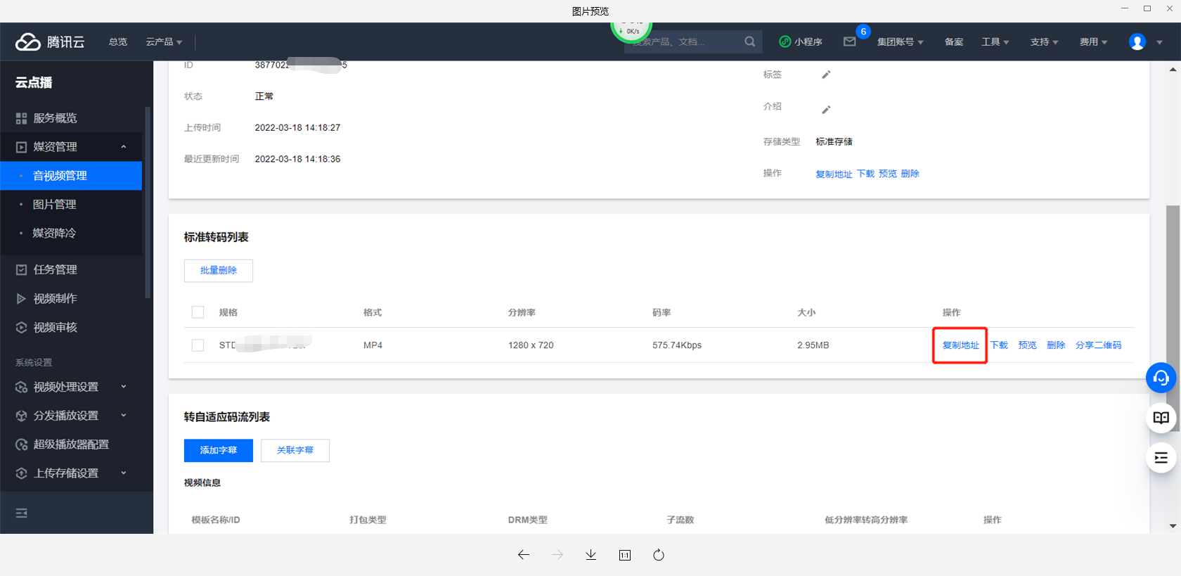 再次注意:这里一定要复制转码后的视频的地址,不要使用原始的视频地址,因为原始的视频可能导致如下问题: