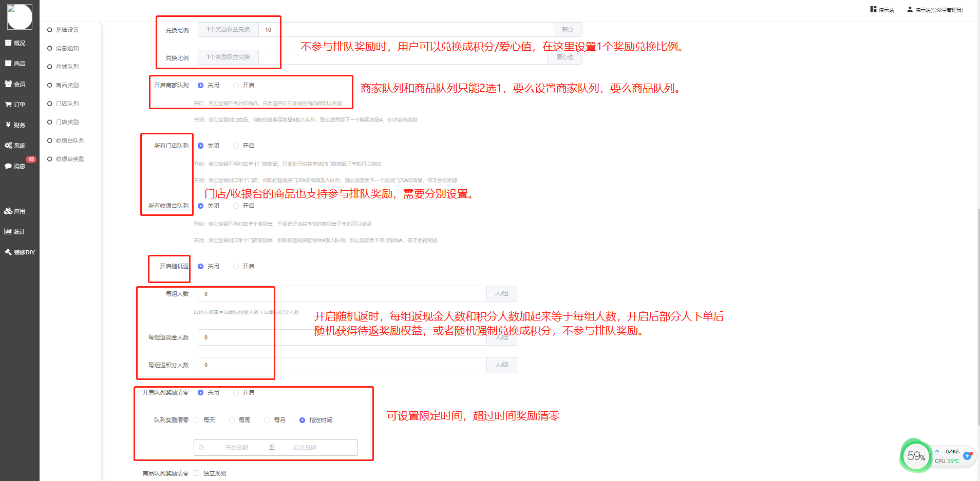 (1)、(2)只能选择一个,如果开启了商家队列,则商品不会在单独排队。