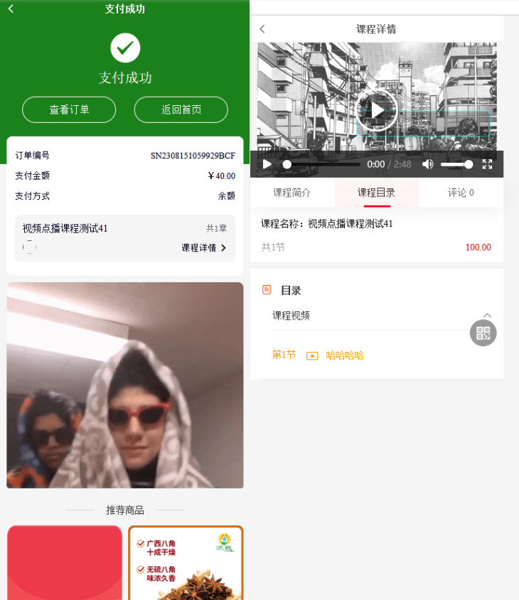 8、课程订单:显示课程信息和奖励信息,点击课程详情跳转到课程商品详情页