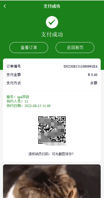 7、预约商品订单:会显示预约日期、核销码、门店信息