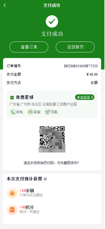 4、门店核销订单:除了显示门店信息,还会显示核销码